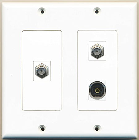 RiteAV - 2 Port Coax Cable TV- F-Type 1 Port Toslink - 2 Gang Wall Plate