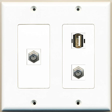 RiteAV - 2 Port Coax Cable TV- F-Type 1 Port USB A-A - 2 Gang Wall Plate