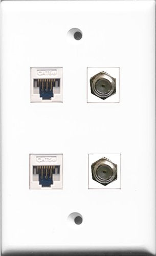 RiteAV - 2 Port Coax Cable TV- F-Type 2 Port Cat5e Ethernet White Wall Plate