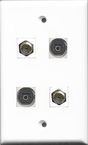 RiteAV - 2 Port Coax Cable TV- F-Type 2 Port Toslink Digital Audio Wall Plate