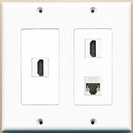 RiteAV - 2 Port HDMI 1 Port Cat5e Ethernet White - 2 Gang Wall Plate