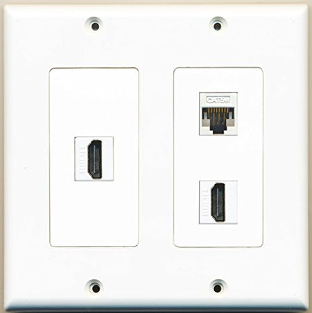 RiteAV - 2 Port HDMI 1 Port Cat5e Ethernet White - 2 Gang Wall Plate