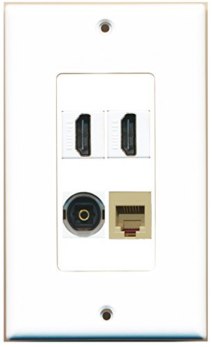 RiteAV - 2 Port HDMI 1 Port Phone RJ11 RJ12 Beige 1 Port Toslink Wall Plate Decorative