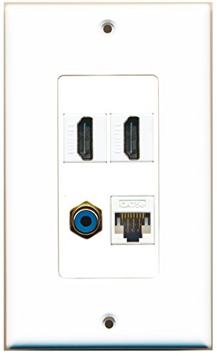 RiteAV - 2 Port HDMI 1 Port RCA Blue 1 Port Cat5e Ethernet White Wall Plate Decorative
