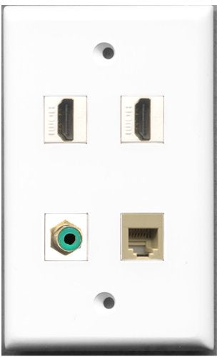 RiteAV - 2 Port HDMI 1 Port RCA Green 1 Port Phone RJ11 RJ12 Beige Wall Plate