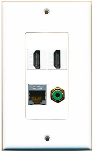 RiteAV - 2 Port HDMI 1 Port RCA Green 1 Port Shielded Cat6 Ethernet Wall Plate Decorative