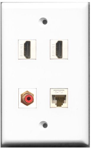 RiteAV - 2 Port HDMI 1 Port RCA Red 1 Port Cat6 Ethernet White Wall Plate