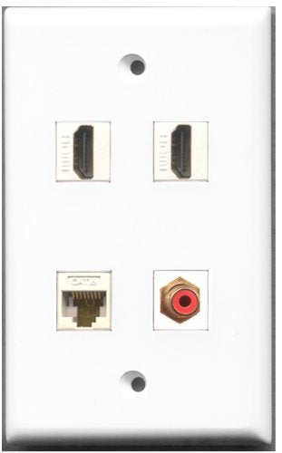 RiteAV - 2 Port HDMI 1 Port RCA Red 1 Port Cat6 Ethernet White Wall Plate