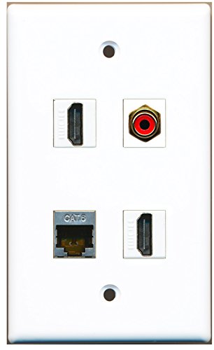 RiteAV - 2 Port HDMI 1 Port RCA Red 1 Port Shielded Cat6 Ethernet Wall Plate