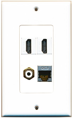 RiteAV - 2 Port HDMI 1 Port RCA White 1 Port Shielded Cat6 Ethernet Wall Plate Decorative