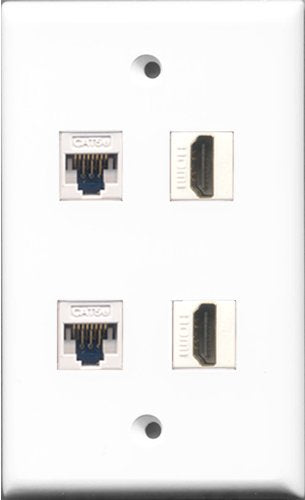 RiteAV - 2 Port HDMI 2 Port Cat5e Ethernet White Wall Plate
