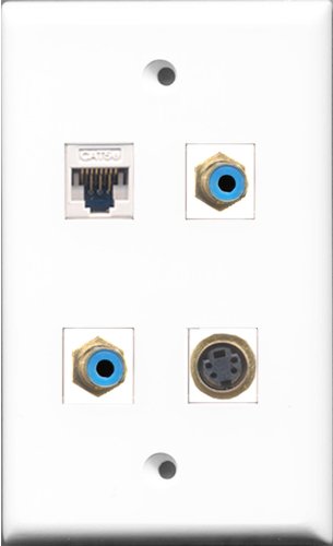 RiteAV - 2 Port RCA Blue and 1 Port S-Video and 1 Port Cat5e Ethernet White Wall Plate