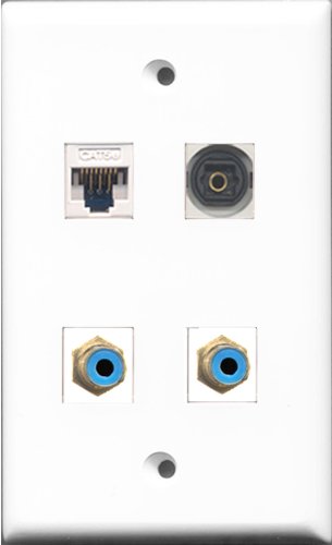RiteAV - 2 Port RCA Blue and 1 Port Toslink and 1 Port Cat5e Ethernet White Wall Plate