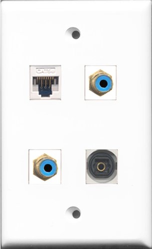 RiteAV - 2 Port RCA Blue and 1 Port Toslink and 1 Port Cat5e Ethernet White Wall Plate