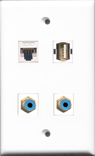 RiteAV - 2 Port RCA Blue and 1 Port USB A-A and 1 Port Cat5e Ethernet White Wall Plate