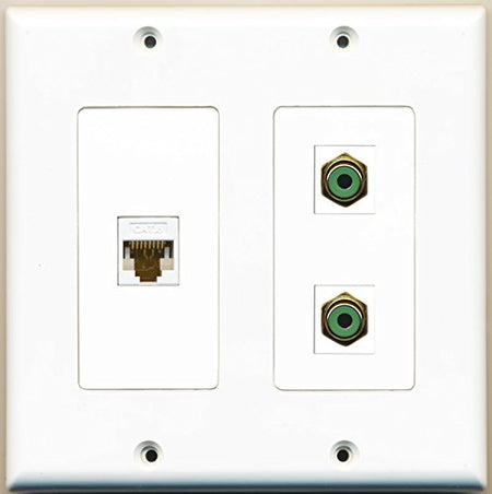 RiteAV - 2 Port RCA Green 1 Port Cat6 Ethernet White - 2 Gang Wall Plate
