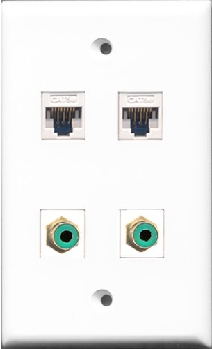 RiteAV - 2 Port RCA Green 2 Port Cat5e Ethernet White Wall Plate