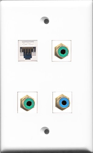 RiteAV - 2 Port RCA Green and 1 Port RCA Blue and 1 Port Cat5e Ethernet White Wall Plate