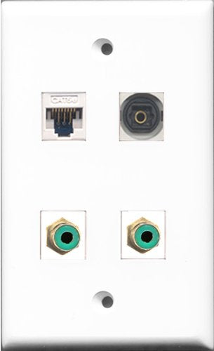 RiteAV - 2 Port RCA Green and 1 Port Toslink and 1 Port Cat5e Ethernet White Wall Plate