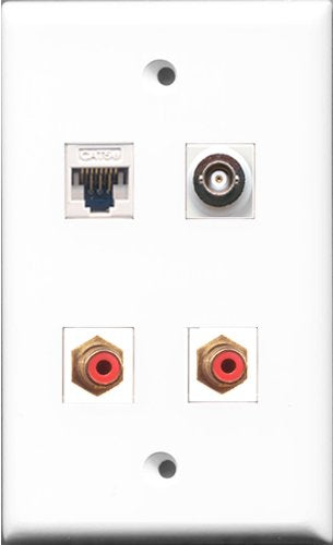 RiteAV - 2 Port RCA Red and 1 Port BNC and 1 Port Cat5e Ethernet White Wall Plate