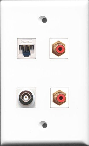 RiteAV - 2 Port RCA Red and 1 Port BNC and 1 Port Cat5e Ethernet White Wall Plate