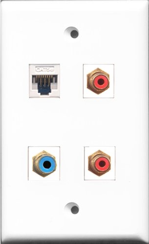 RiteAV - 2 Port RCA Red and 1 Port RCA Blue and 1 Port Cat5e Ethernet White Wall Plate