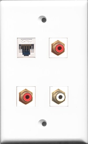 RiteAV - 2 Port RCA Red and 1 Port RCA White and 1 Port Cat5e Ethernet White Wall Plate