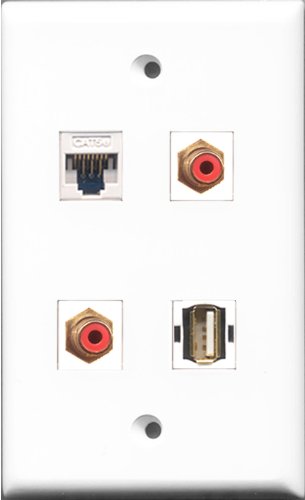 RiteAV - 2 Port RCA Red and 1 Port USB A-A and 1 Port Cat5e Ethernet White Wall Plate
