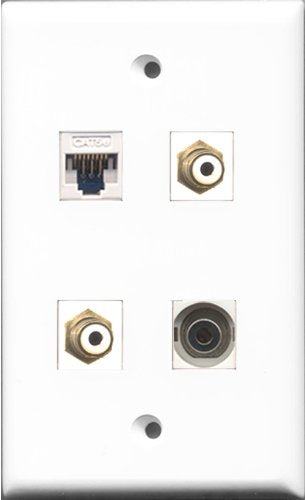 RiteAV - 2 Port RCA White and 1 Port 3.5mm and 1 Port Cat5e Ethernet White Wall Plate