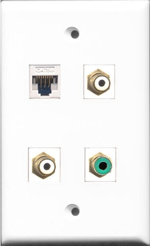 RiteAV - 2 Port RCA White and 1 Port RCA Green and 1 Port Cat5e Ethernet White Wall Plate