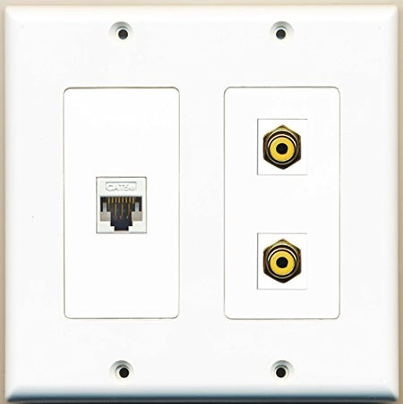 RiteAV - 2 Port RCA Yellow 1 Port Cat5e Ethernet White - 2 Gang Wall Plate
