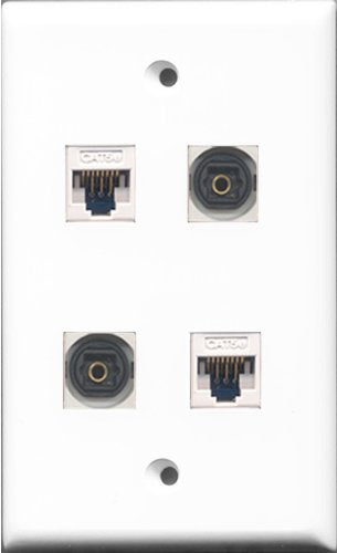 RiteAV - 2 Port Toslink 2 Port Cat5e Ethernet White Wall Plate