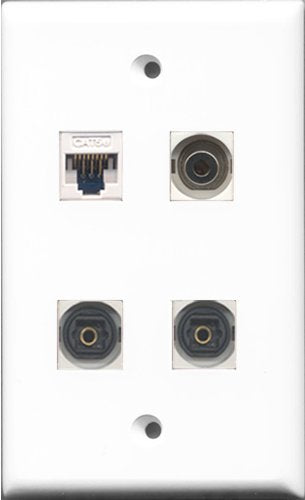 RiteAV - 2 Port Toslink and 1 Port 3.5mm and 1 Port Cat5e Ethernet White Wall Plate
