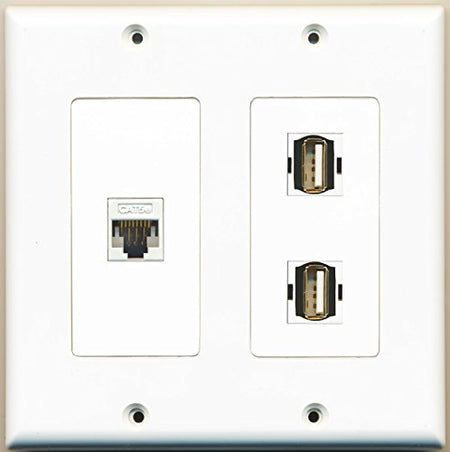 RiteAV - 2 Port USB A-A 1 Port Cat5e Ethernet White - 2 Gang Wall Plate