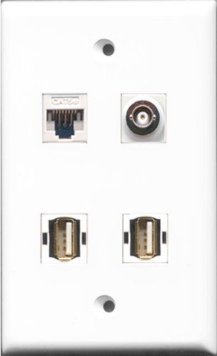 RiteAV - 2 Port USB A-A and 1 Port BNC and 1 Port Cat5e Ethernet White Wall Plate
