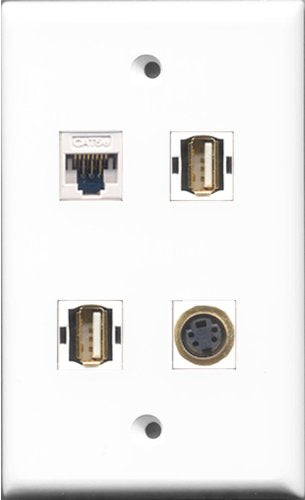 RiteAV - 2 Port USB A-A and 1 Port S-Video and 1 Port Cat5e Ethernet White Wall Plate