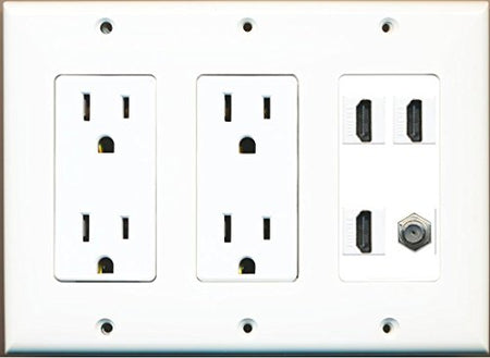 RiteAV 2 Power Outlet 3 HDMI White Coax Wall Plate White