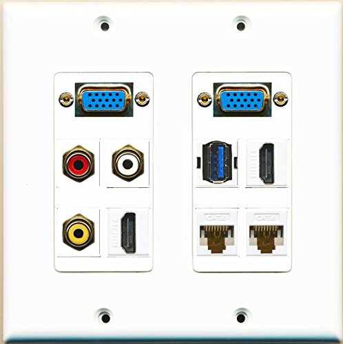 RiteAV 2 Svga 2 HDMI 2 Cat6 RCA Composite USB 3 Wall Plate Dual Gang White
