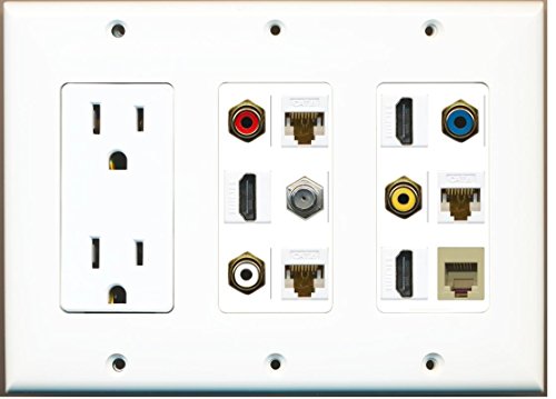 RiteAV (3 Gang)15A Outlet 3 HDMI Coax 3 Cat6 RCA Red Blue White Yellow Phone Wall Plate