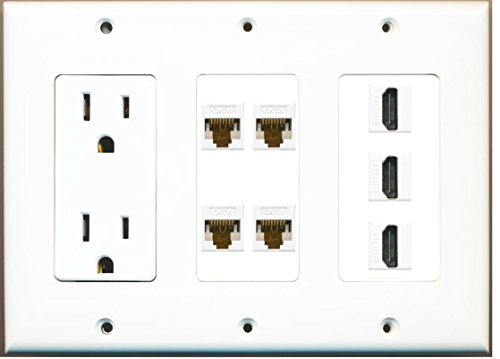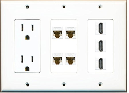 RiteAV - (3 Gang) 15A Power Outlet 3 HDMI 4 Cat6 White Wall Plate White