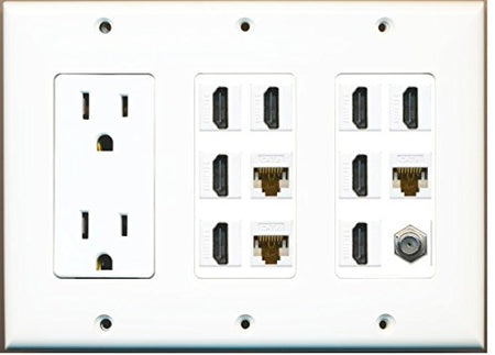 RiteAV - (3 Gang) 15A Power Outlet 8 HDMI Coax 3 Cat6 White Wall Plate White