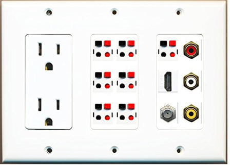 RiteAV (3 Gang) 15A Power Outlet HDMI Coax Composite Video 7 Speaker Wall Plate White