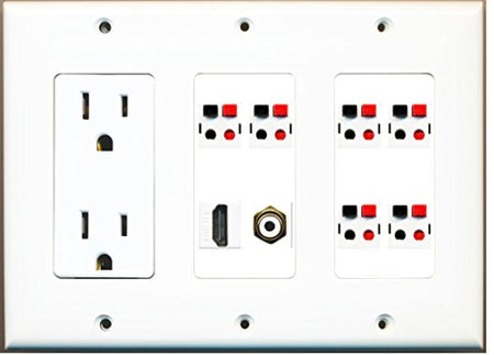 RiteAV - (3 Gang) 15A Power Outlet HDMI RCA White 6 Speaker Jack Wall Plate White