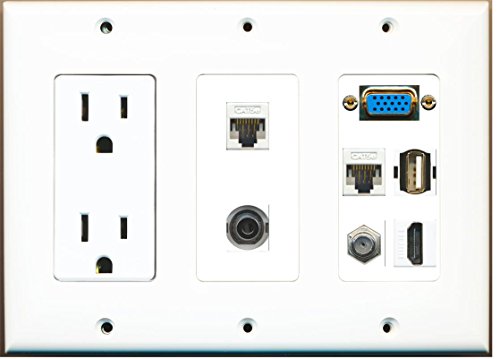 RiteAV - (3 Gang) 15A Power Outlet Svga HDMI Coax 2 Cat5e White 3.5mm USB A Wall Plate