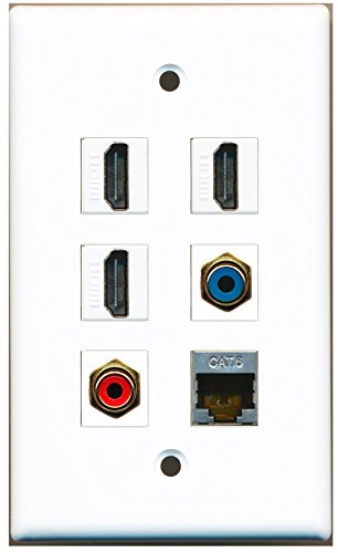 RiteAV - 3 HDMI 1 Port RCA Red 1 Port RCA Blue 1 Port Shielded Cat6 Ethernet Wall Plate