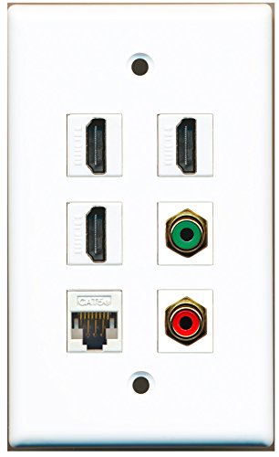 RiteAV - 3 HDMI 1 Port RCA Red 1 Port RCA Green 1 Port Cat5e Ethernet White Wall Plate