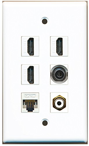 RiteAV - 3 HDMI 1 Port RCA White 1 Port 3.5mm 1 Port Cat5e Ethernet White Wall Plate