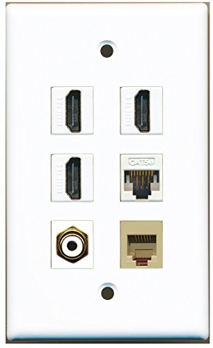 RiteAV - 3 HDMI 1 Port RCA White 1 Port Phone RJ11 RJ12 Beige 1 Port Cat5e Ethernet White Wall Plate