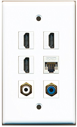 RiteAV - 3 HDMI 1 Port RCA White 1 Port RCA Blue 1 Port Cat5e Ethernet White Wall Plate