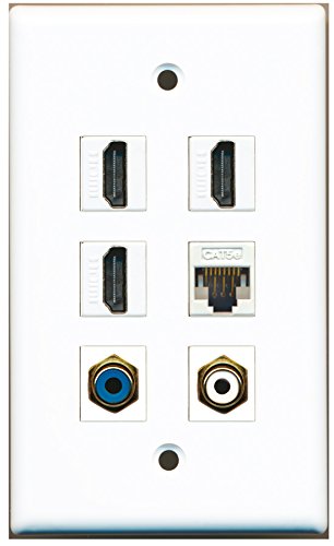 RiteAV - 3 HDMI 1 Port RCA White 1 Port RCA Blue 1 Port Cat5e Ethernet White Wall Plate